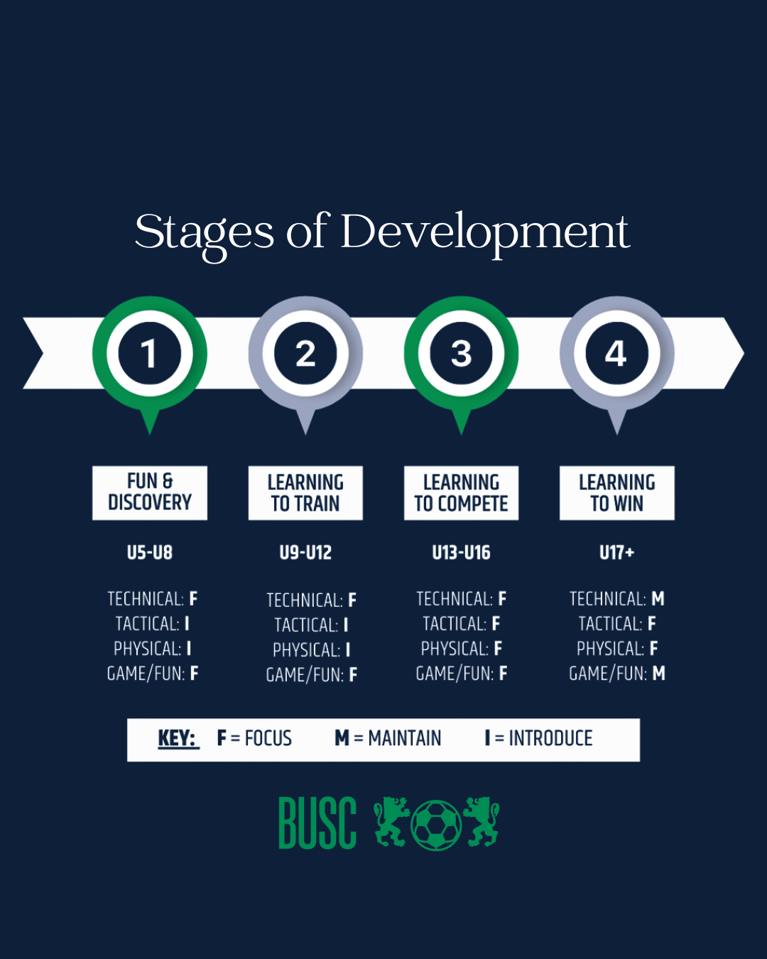Each step within the pathway is designed in a child-centered way. By considering the technical, tactical, physical, psychological, emotional, and language needs of each age group, everything from the calendar to the training sessions can be designed with their development in mind.